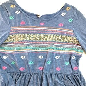 Ladies super cute blue multicolored embroidered boho peasant style blouse. Excellent condition. Ladies size medium by poof.