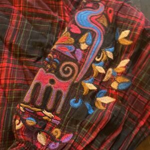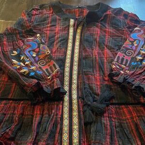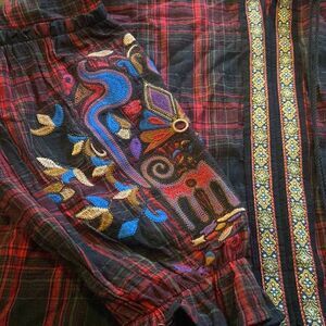 Ladies plaid and embroidered top size XL, ruffled bottom