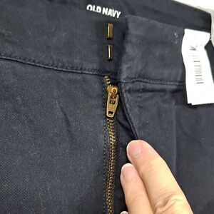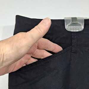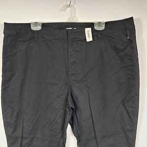 Black, size 22. Adorable pixies have zipper fly front with pockets, back has faux welt pockets. Fabric is 96/ cotton, 4/ spandex. Cute and comfortable! Measures 44" waist, inseam is 26".