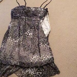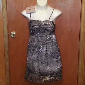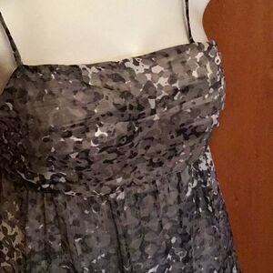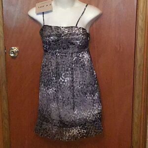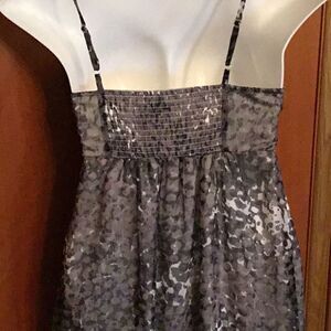 Cute little dress with adjustable spaghetti straps in easy-care polyester. Size 10 from VENUS. In excellent preowned condition. Side zipper, smocked back, ruffle at hem. Measurements are as follows 36”, waist 32”, hips 36”, dress length 36”.