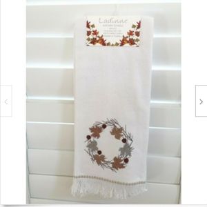 1. Towel with beautiful embroidery of Golden & Brown wreath on pristine pure white cotton fabric