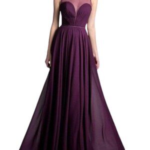 Create a perfect evening wearing this gorgeous creation from LaDivine CJ251. This sleeveless gown is made from chiffon fabric and highlights the shirred detail that adds a touch of elegance. It boasts the sheer yoke with wide shoulder straps, a v-shaped back, and an illusion jewel neckline over a plunging sweetheart lining. A thin band cinches the natural waist, while the gathered skirt flares out an A-line silhouette that cascades to the ravishing full length hemline. You will be the center of attention in this design by LaDivine CJ251.
