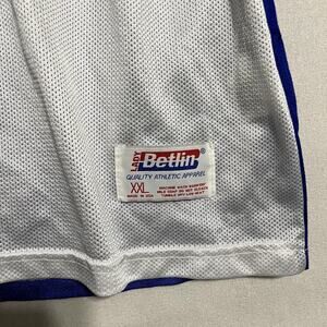 Materials: Polyester mesh (typical for athletic jerseys). The tag does not specify composition, but care instructions indicate "Machine Wash Warm 100° Mild Soap No Bleach Tumble Dry Low Heat."