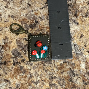 This is a charming and unique bag charm or key chain that features a lovely pattern of mushrooms and ladybugs. The multicolor design adds a fun and playful touch to any handbag or set of keys. Perfect for women who love the outdoors and want to add a touch of nature to their accessories.