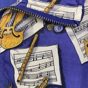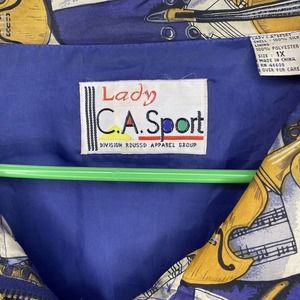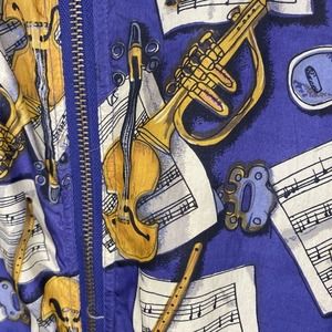 Lady CA SPORT Bomber Jacket Womens 1x Blue Silk Musical Theme Vintage Full Zip