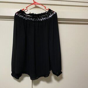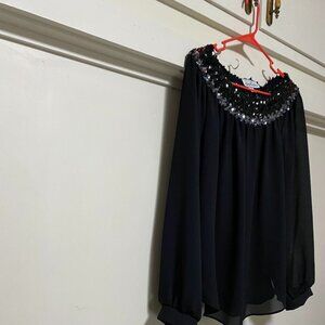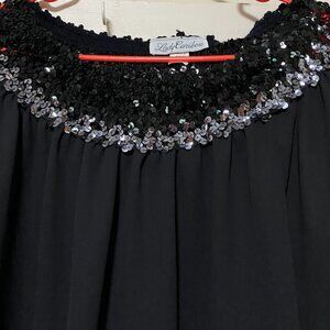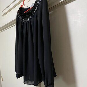 Lady Caribou long sleeve slightly sheer black blouse w/sparkle neckline, size XL