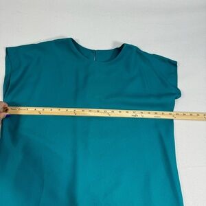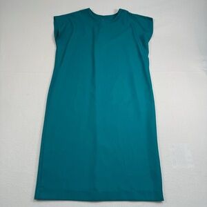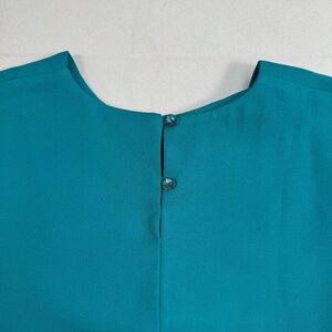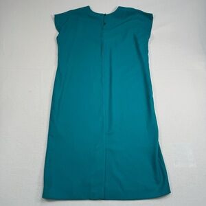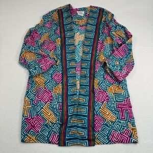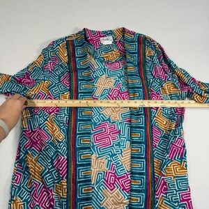 -Style tags: vintage, 2 piece set, cap sleeve midi shift dress, pullover button closure, teal, geometric aztec open jacket cardigan, multicolor