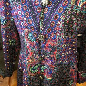 Lady Carol size 12 jacket and skirt paisleys and other designs very classy 100% rayon skirt has elastic at waist jacket has shoulder pads