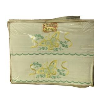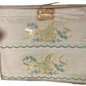 Lady Christina quality pillowcases set of two, made in Canada, 1960’s.! These pillow cases are new in box and never opened. The top cover to this box itself is in poor condition with several rips. This is due to age of this item.