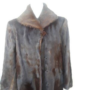 Lady Espresso Brown Genuine Fur Calf Hair Fur Coat Winter Coat Stroller M L Long Jacket.