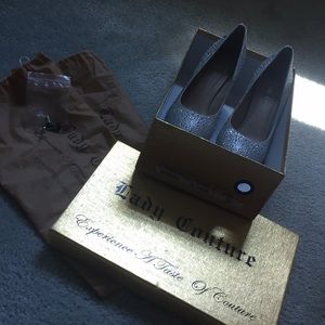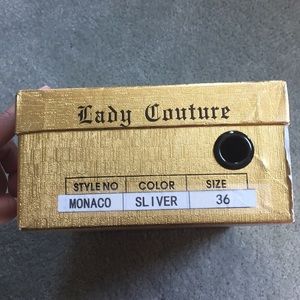 Comes with all original packaging (box; 2 dust protective bags; extra rhinestones and replacement heel grips)