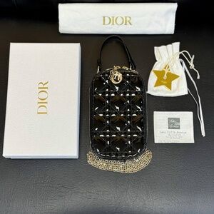 Lady Dior Call'in Dior Phone Holder Crossbody Black Patent Cannage Calfskin phon