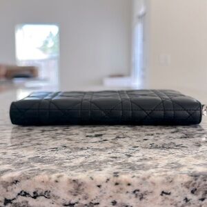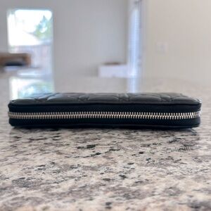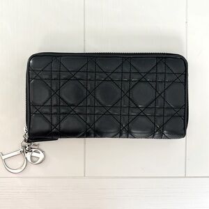 Lady Dior Voyageur Cannage Black Quilted Leather Zip Around Wallet w/ Logo charm
