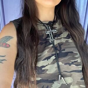 Total length of tie is ~36”. Adjustable Chappell Roan inspired resin accent on metal slide with weighted metal beads on each end. Genuine leather braided cord in black. Brand new.