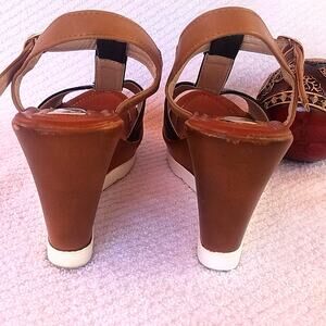 Lady Godiva Wedge Platform Sandal/Pump Size 8 Brown And Black Leather Opened Toe.