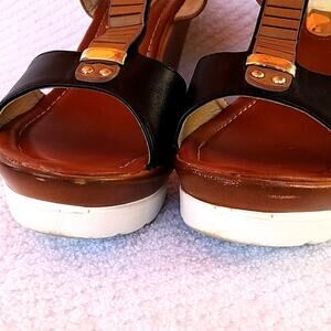 Lady Godiva Wedge Platform Sandal/Pump Size 8 Brown And Black Leather Opened Toe