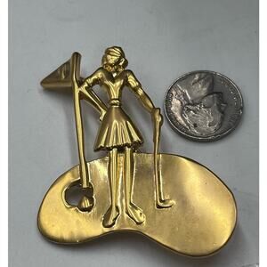 Lady Golfer Pin/Brooch Vintage, Gold Bezel, Shiny Gold Lady Golfer, CAJC Design