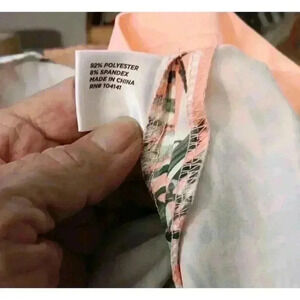 This Lady Hagan skort is perfect for any active woman who loves a tropical look. The peach, white, and green print is eye-catching and adds a touch of fun to any golf or tennis outfit. The skort features a hook and eye closure, spare button, and pockets for convenience.