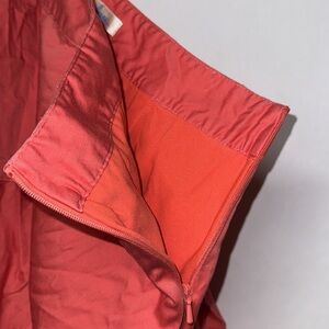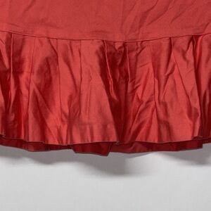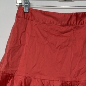 Coral golf skirt, perfect for adding a pop of color to any outfit. This skirt features a classic mini length and a playful ruffled hem, creating a flattering flared silhouette. Its clean lines and simple design make it versatile enough for both casual and dressy occasions. or a fun day out, this skirt is a stylish and comfortable choice. size 2. waist 13 in. flat, 15.5 in. top to bottom. size zipper