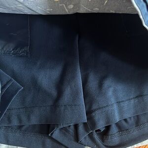 This blue skort by Lady Hagen features a dynamic golf club and ball pattern, perfect for athletic and casual occasions. Designed with a fitted waistband and a flared silhouette, it offers both style and comfort. The performance fabric ensures a slight sheen and includes a white undershort for added coverage. Gently used.