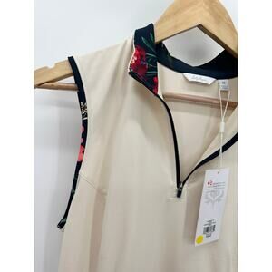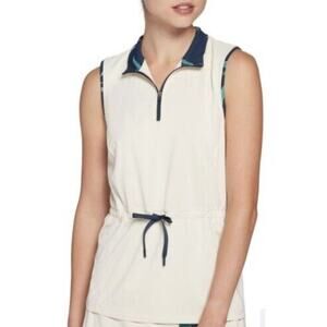 Lady Hagen Cream Plaid Drawstring Sleeveless Polo Tank Women's Size Medium M NWT