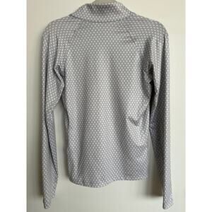 Stay stylish and comfortable with this Lady Hagen gray patterned 1/4 zip sport pullover. Designed for performance and ease, this lightweight layer features a subtle geometric print, mock neck, and athletic fit — perfect for golf, tennis, or everyday wear.