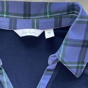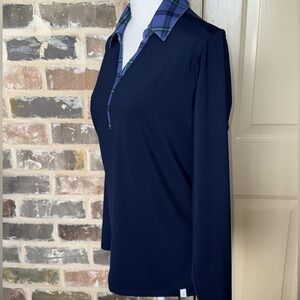 Lady Hagen Navy Blue Clubhouse Long Sleeve Polo Plaid Johnny Collar Sz M