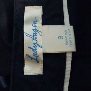 Lady Hagen navy blue trouser pants in size 8. These flat-front pants feature belt loops and are in excellent used condition.