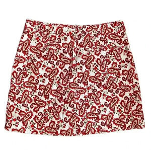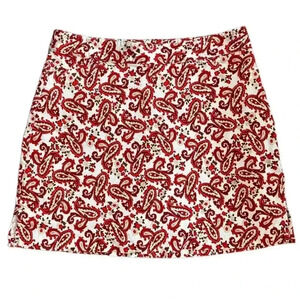 {Lady Hagen} Red Cream Brown Paisley Print Golf Tennis Skirt Skort