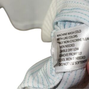 • Color: White with Teal Dot Stripes