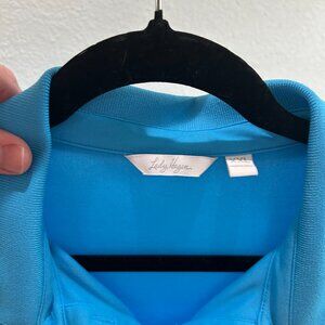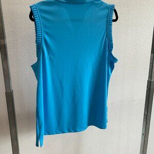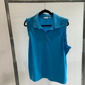 Beautiful NWOT Lady Hagen XXL ruffle sleeveless golf polo, turquoise. Two callouts - tiny pull on bottom front (pictured) and small pull on the back. Priced as such. MSRP $72.