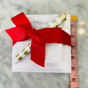 Lady Jayne Christmas Holiday Stacked Notepad - NEW. Three stacked notepads with gold striped ballpoint pen and red ribbon.