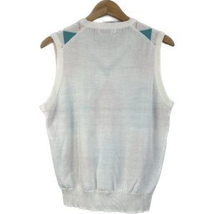Vintage Lady La Mode Golf Vest Women's Size M White Knit Checker 100% Cotton