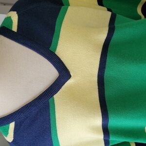 Lady LaMode active sportswear blue, yellow and green V neck sweater size XL.