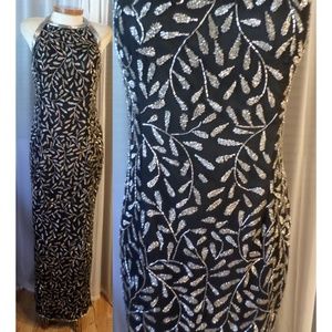 Lady Long Silk Gown Beads Sequin M Kazar Dress VTG