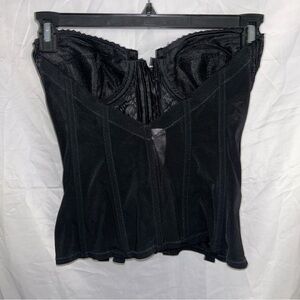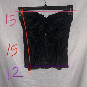 Elegant black lace bustier top with zipper front. Perfect for a night out.