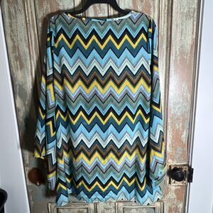 Lady Noiz Large Swing Style Dress Boho Groovy Vibes Chevron