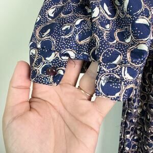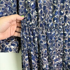 Lady Page Susan Page VINTAGE navy blue white jacquard print midi dress MEDIUM
