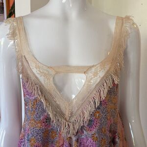 Lady Pink Floral Fringe Tent Summer Mini Dress Size Small