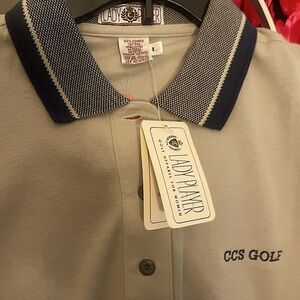 Elevate your style with this Women’s Polo Shirt. This tan, two-toned collared, short sleeved polo shirt offers a classic look with a comfortable fit for Golfers.