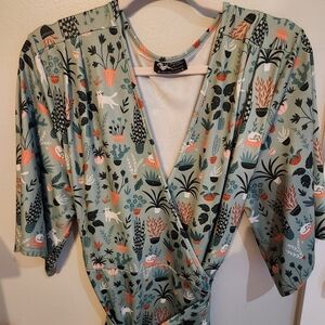 GUC. Super cute cat plant print. This is a true wrap dress. Smoke free cat friendly home. UK size 20