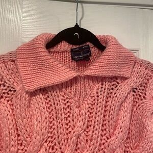 Lady Van Heusen Size L Chunky Bubblegum Pink Hand Knit Cable Collared Sweater