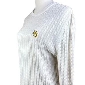 Lady Vesi Baylor BU Embroidered Silk Cotton Blend Long Sleeve Cable Knit Sweater