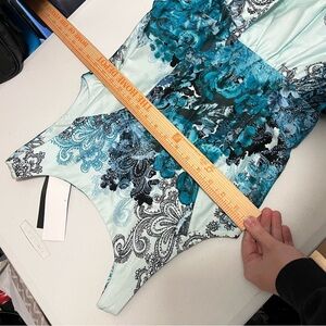 Lady Vintage Tea Dress Teal Collage UK 10 US 6 Q2