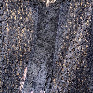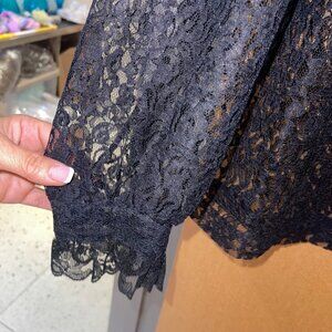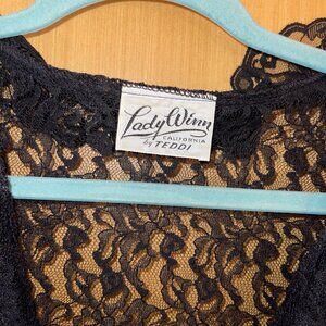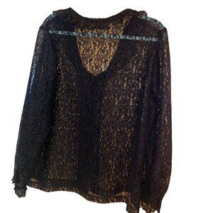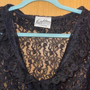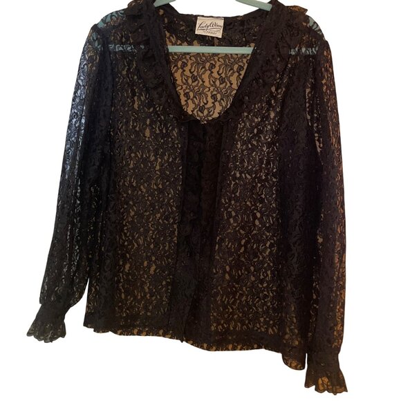 Lady Winn California by Teddi Womens Blouse Size Large Black Lace Ruffle Trim