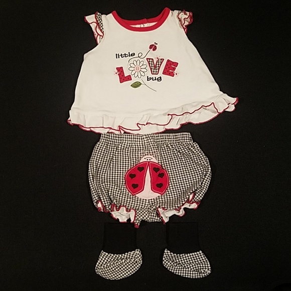 Specialty Baby brand adorable 4-piece lady big set. Includes shirt, bloomers, and booties. Size 3-6 months.
