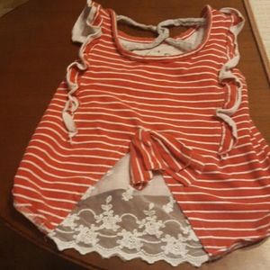 Cute summery top with lace accents and a bow in the back.