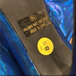 Electric blue metallic runway boots