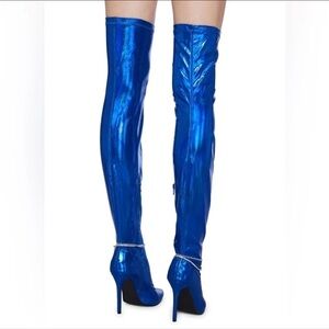 Theme runway electric metallic blue carmen Electra stiletto heel boots thick thighs over the knee boots