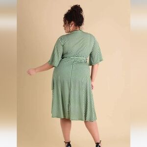 Lady v london green gingham flutter sleeve wrap dress plus size office casual